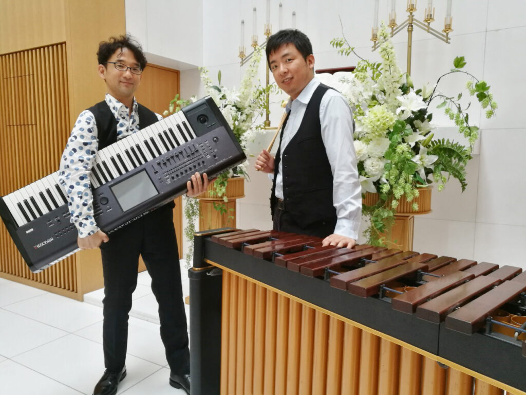 マリンバ奏者「松岡 雅史(まつおか まさふみ)」(右)との