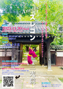 ご当地ソングライター、演歌歌手の「ずれやまズレ子」さんの伴奏で出演いたします。 紅葉のお寺でバラード中心のライブ!どうぞお楽しみに。 日時:2025年11月30日(日)開場:14:30開演:15:00会場:三光院十月堂( […]